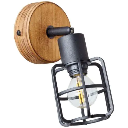 Brilliant Gwen Luce Da Parete Metallo Legna Nero | Adatto per 1x E14