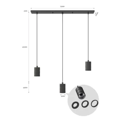 | Nome del fabbricante | Calex Retro pendant lamp with ceiling plate rectangular 10x70cm, black fitting 3xE27 (2 meter cord) | |