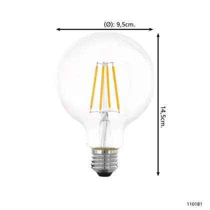 Descrizione Eglo LED Globe E27 Filamento Chiara 7.3W 806lm - 827 Bianco Molto Caldo | Dimmerabile - Sostitutiva 60W