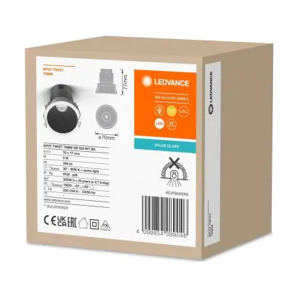 L'illuminazione LED è famosa per essere molto più efficiente dal punto di vista energetico rispetto ad altre soluzioni di illuminazione e questo faretto LED di Ledvance non è da meno. Infatti, pur avendo una potenza luminosa di 350 lumen, consuma 5 watt. L'investimento iniziale sarà quindi ripagato molto velocemente!