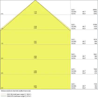 L'apertura del fascio luminoso indica l'angolo del fascio di luce proveniente da una lampada o lampadina. Si misura in gradi (D) e più piccolo è l'angolo, più piccola è l'apertura del fascio di luce.