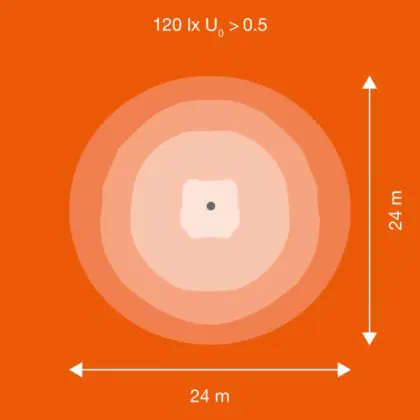 Questo apparecchio può essere usato sia in spazi interni che in spazi esterni, poiché ha indice di protezione contro l'ingresso di acqua e polvere IP66. In generale, un apparecchio con IP44 è resistente a schizzi di acqua e umidità, e può quindi essere installato in spazi esterni molto umidi o esterni riparati, come sono una tettoia. Un apparecchio che invece verrà esposto a intensi getti di acqua deve avere almeno IP54. Questa lampada ha anche un indice di resistenza a urti e impatti di IK08 - 5 Joule