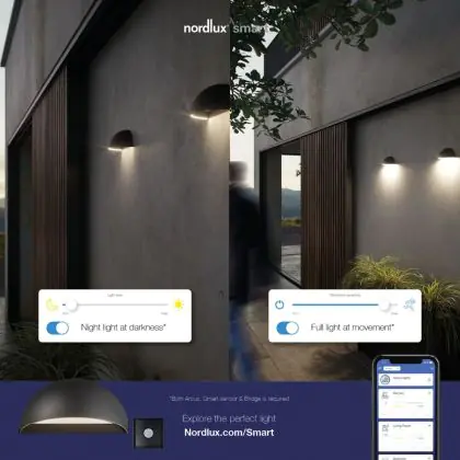 Descrizione Nordlux Arcus Smart LED Luce da parete Nero 9.5W 440lm 148D – 827 - Bianco Molto Caldo | Dimmerabile - IP54