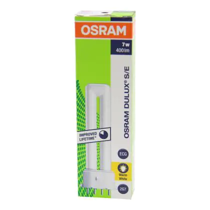 Le Osram Dulux S/E 7W/830 Lumilux Warm White sono lampade fluorescenti compatte che presentano una potenza pari a 7W. Le stesse sono poi dotate di attacco a 4 pin (perni). I vantaggi di tali lampade sono diversi: oltre alla lunga vita di 20.000 ore é importante ricordare l'elevata efficienza luminosa.