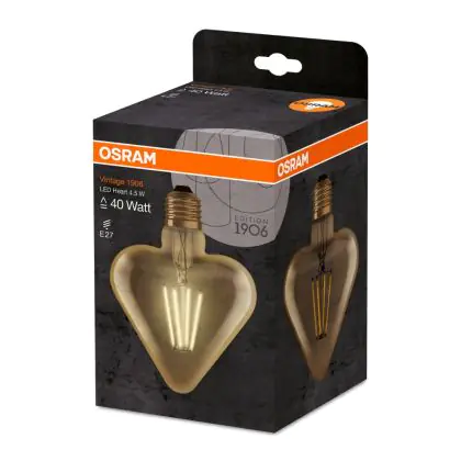 Descrizione Osram Vintage 1906 LED E27 Heart Filamento Oro 4.5W 470lm - 825 Bianco Molto Caldo | Sostitutiva 40W