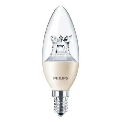 La lampada Philips MASTER LED Candela E14 Corona Chiara 5.5W 470lm - 822-827 Dim To Warm | Dimmerabile - Sostitutiva 40W è il sostituto perfetto per le tue vecchie lampade 40W con attacco a vite piccolo E14 grazie alla sua tecnologia LED. Passare a LED ti offrirà molti vantaggi!