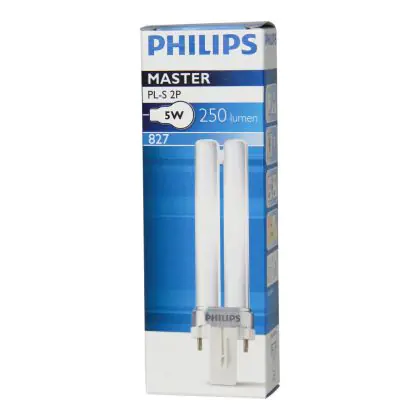 Le Philips PL-S 5W 827 2P (MASTER) sono lampade fluorescenti compatte a bassissimo contenuto di mercurio. Sono molto efficienti e garantiscono performance ottimali di illuminazione per periodi di accensione brevi o lunghi. Tali lampade fluorescenti compatte sono dotate di attacco G23 e la base presenta 2 pin (perni). La potenza delle Philips PL-S 5W 827 2P (MASTER) é pari a 5W. Quando sostituisci le tue lampade fluorescenti compatte é fondamentale scegliere le nuove con il medesimo attacco, numero di pin (perni) e potenza di quelle che stai attualmente usando altrimenti non sarai in grado di installarle.